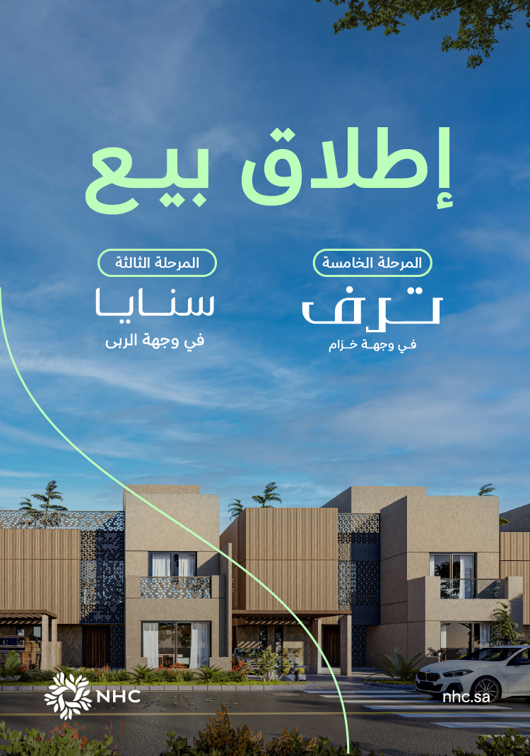 أعلنت NHC عن بدء بيع المرحلة الخامسة من مشروع "ترف" في وجهة خزام والمرحلة الثالثة من مشروع "سنايا" في وجهة الربى في مدينة الرياض، امتدادًا للنجاح الكبير الذي شهدته المراحل السابقة، في مؤشر يعكس حجم الإقبال اللافت وثقة عملاء NHC في جودة مشاريع الشركة وتميزها في تقديم وجهات عمرانية متكاملة ترتقي بتجربة السكن في العاصمة الرياض.